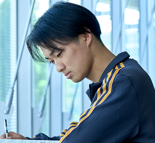 高校では商業を学んでいましたが、より学びを深めたいと思い、大商大への進学を選びました。大商大のオープンキャンパスに参加した際、学生たちがのびのびと過ごしている雰囲気を感じて、自分にとても合っていると思ったことも決め手になりました。将来を見据えて、大学では不動産分野の知識を身につけたいと思っていたことや、就職活動の幅も広がることも考え、宅地建物取引士の資格に挑戦。大商大は宅建の合格率が高く、難関資格に挑む学生への手厚いサポート環境も大きな後押しとなりました。さらに、資格利用入試で入学すると、50コ―スもある学内の