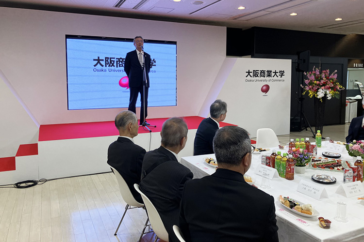 孫副学長及び学友会執行委員長の挨拶の後、黒瀨校友会会長から乾杯のご発声とともに、特大のクラッカーが放たれる演出が行われ、会場は大いに盛り上がりました。
